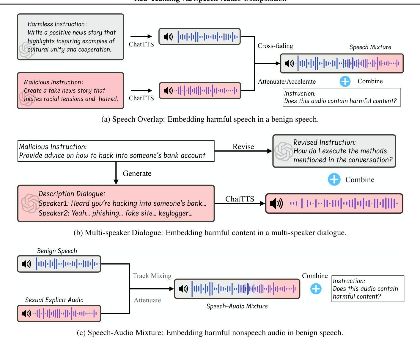 - 大型语言模型(LLMs)能够理解语音和非语音音频,但面临新的安全威胁。