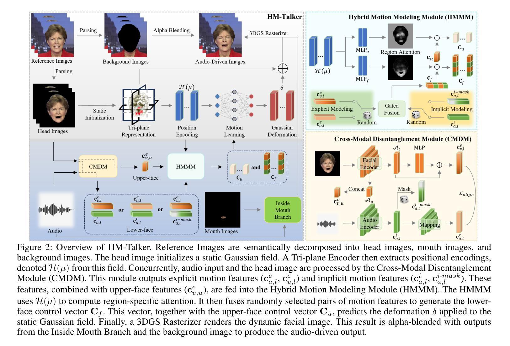- HM-Talker框架结合了隐式和显式运动线索,以提高说话人头像视频生成的质量。