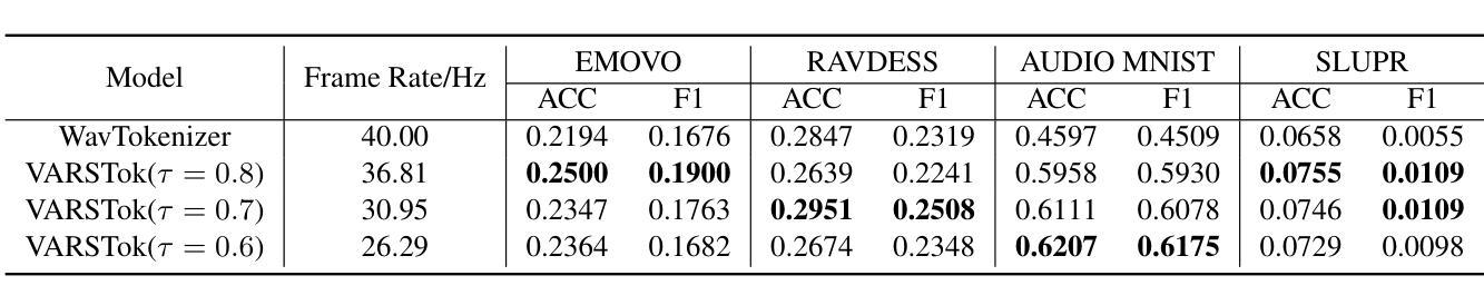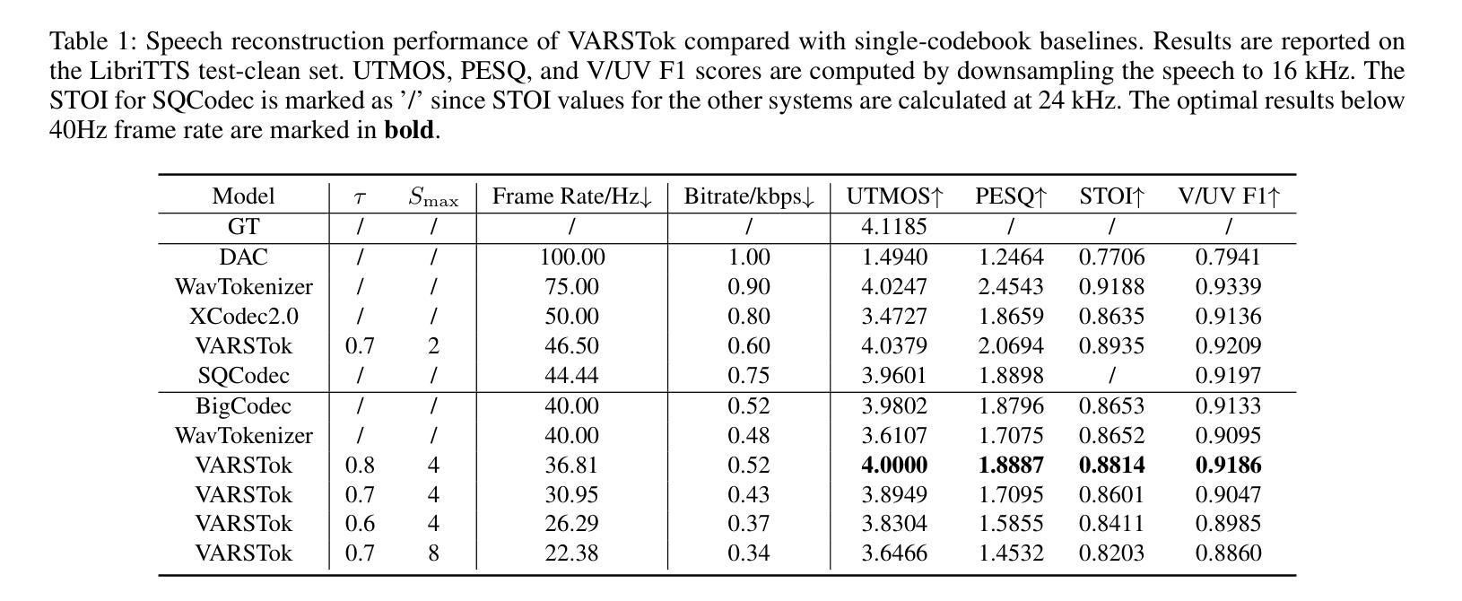- VARSTok显著优于固定帧率基线,实现了更自然的重建效果,并降低了单词错误率。