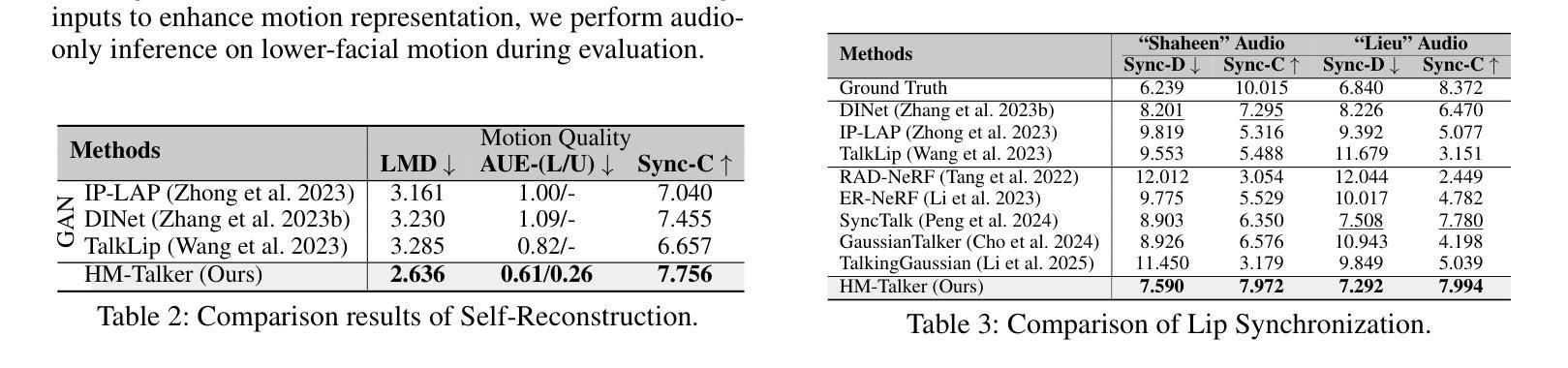 - HM-Talker在视觉质量和唇同步准确性方面优于现有方法。