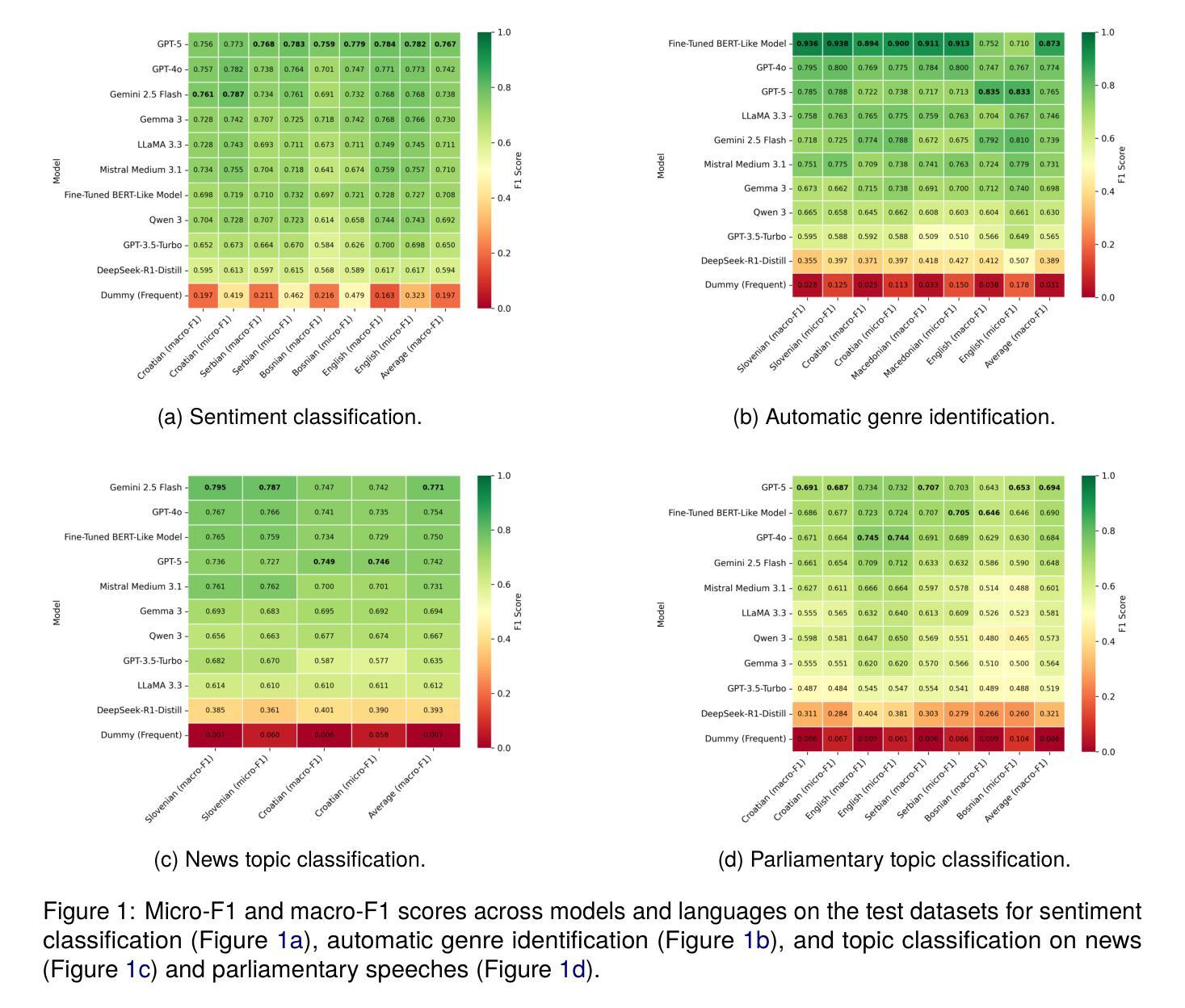- 相较于LLMs,微调过的BERT类似模型在大规模自动文本标注中更为实用。