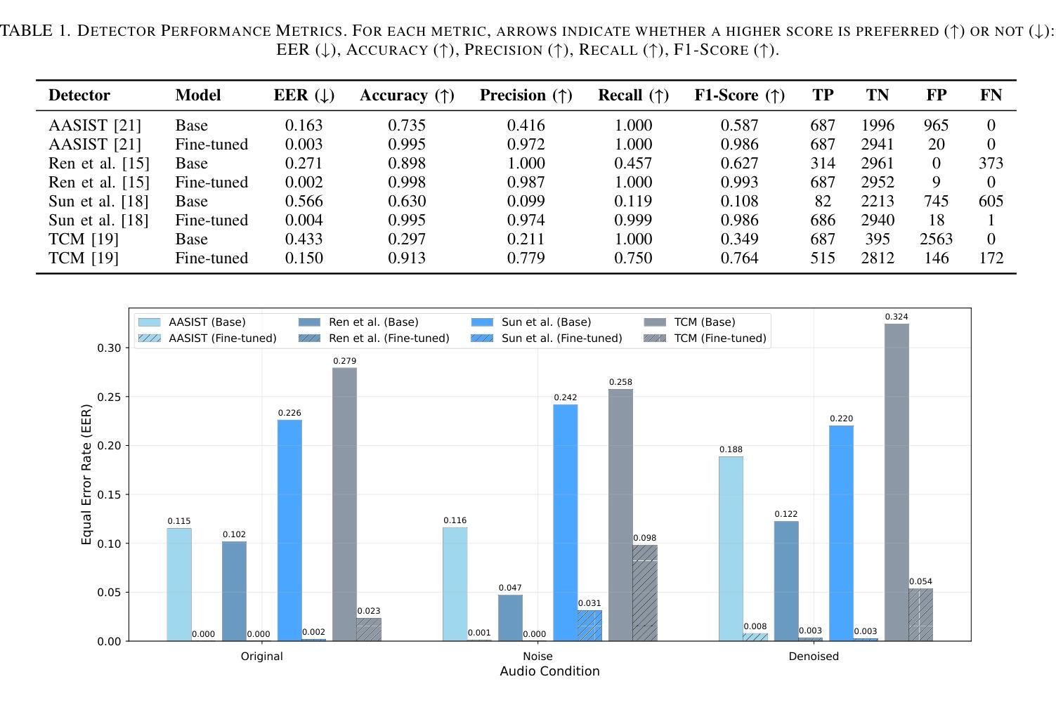- 现有音频深度伪造检测器无法可靠检测FOICE生成的语音,无论在干净或噪声环境下。