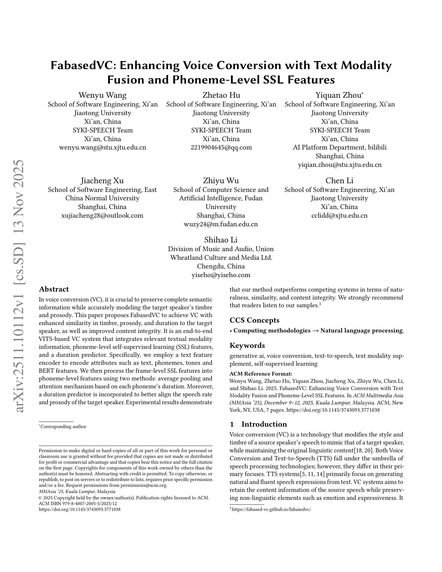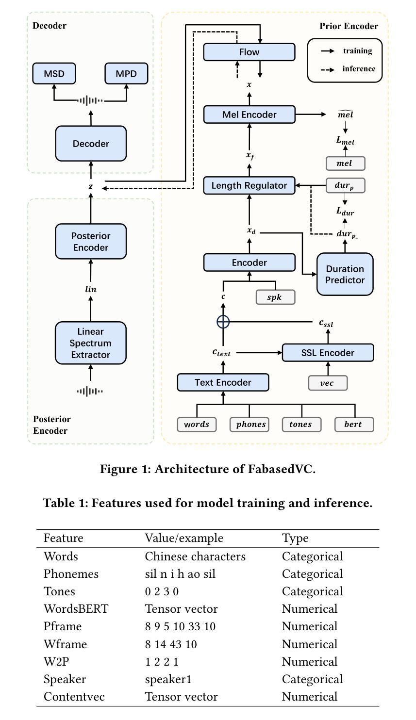 - FabasedVC是一个端到端的语音转换系统,旨在增强目标说话人的音色、语调及时长的相似性,并改善内容完整性。