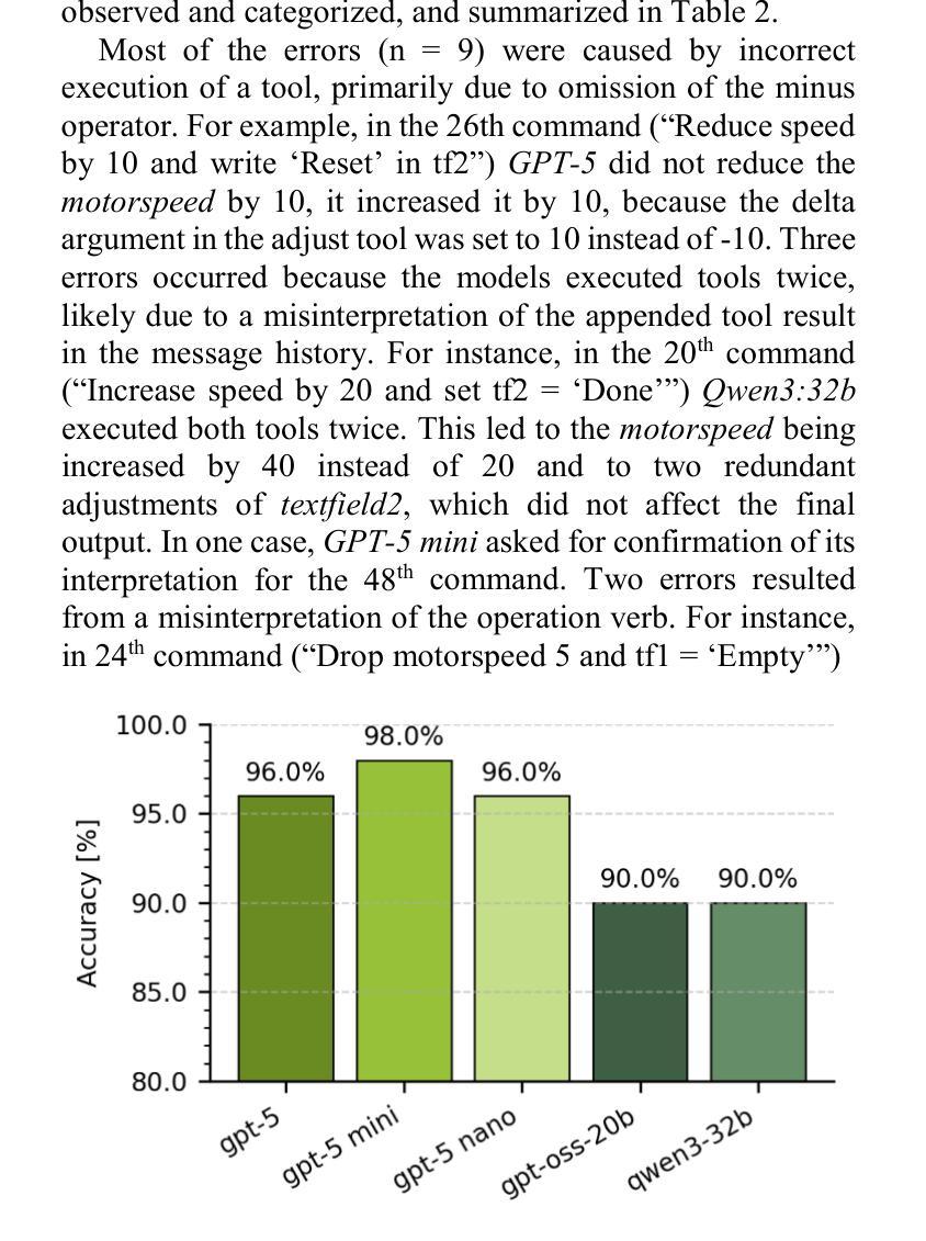 - 在Siemens S7-1500可编程逻辑控制器上的案例研究表明,该方法成功率很高,专有GPT 5模型的准确率在96.0%至98.0%之间。