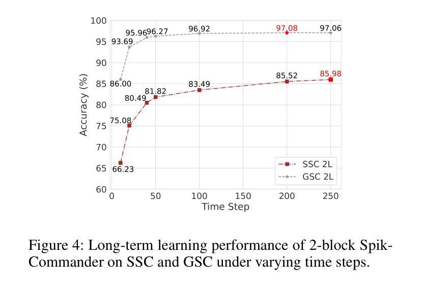 - 实验表明,SpikCommander在参数和时间步长相似的情况下,性能优于最新的SNN方法。