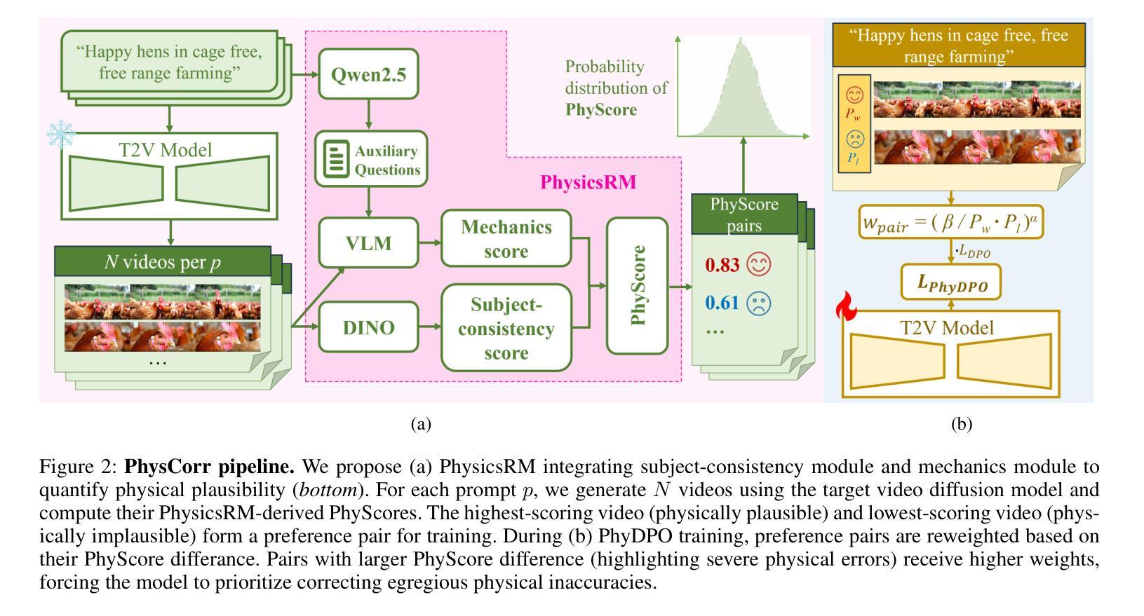 - 该方法利用对比反馈和物理感知重权来引导生成更物理上连贯的输出。