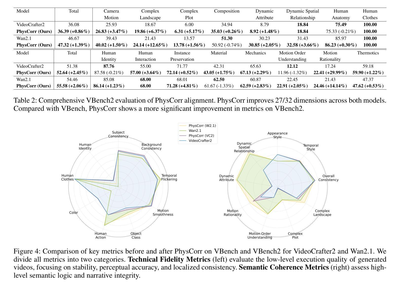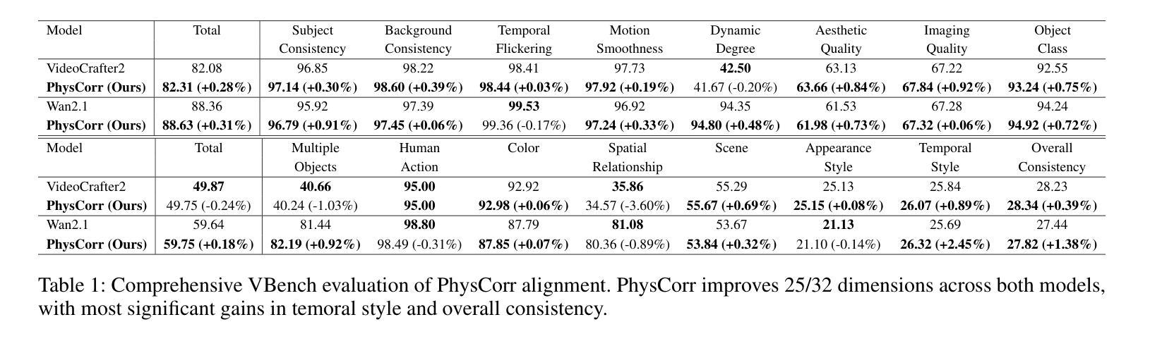 - 实验证明,PhysCorr在提升物理真实感的同时保持视觉保真度和语义对齐。