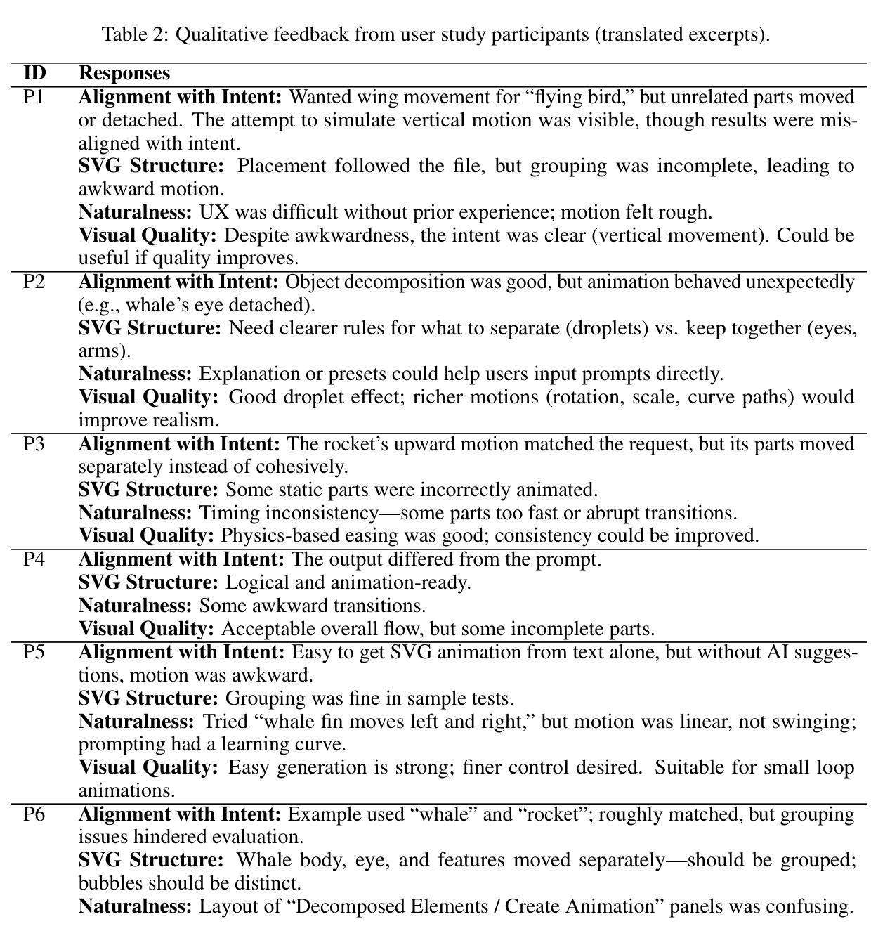 - 利用多模态大型语言模型重组SVG,形成动画就绪的语义组件。