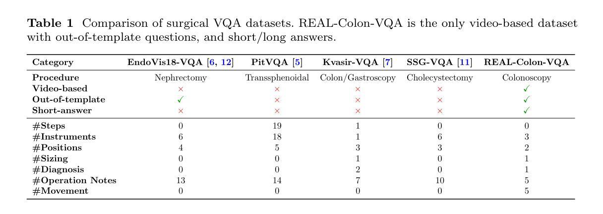 - SurgViVQA具有良好的泛化能力和对问题表述变化的稳健性。