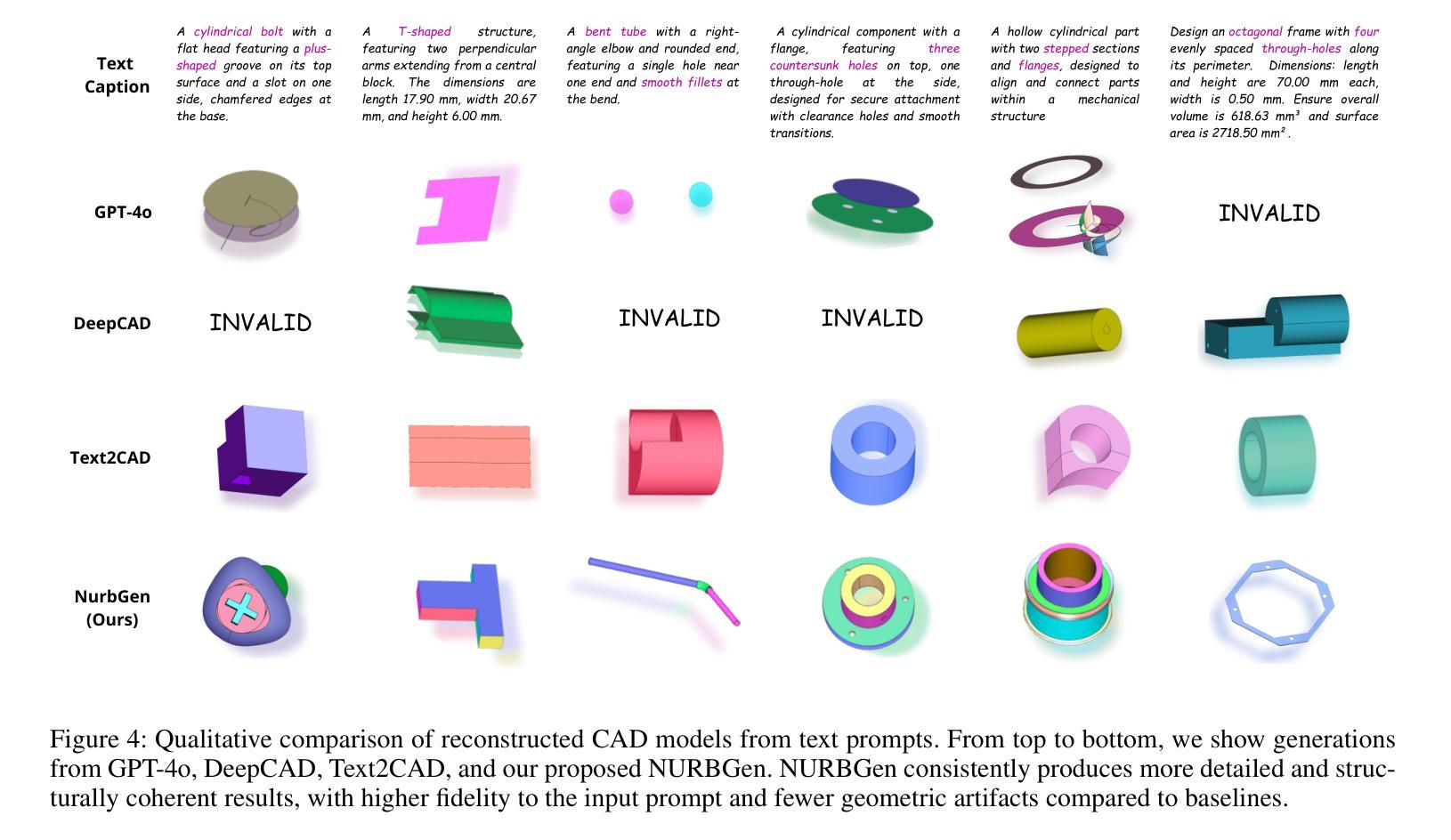 - 提出了一种基于非均匀有理B样条(NURBGen)技术的全新框架,直接从文本生成高质量的三维CAD模型。