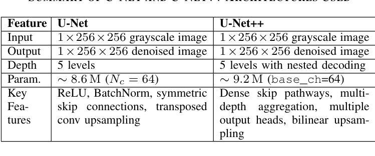 - U-Net++在去噪性能上表现优异,尤其在PSNR和SSIM方面。