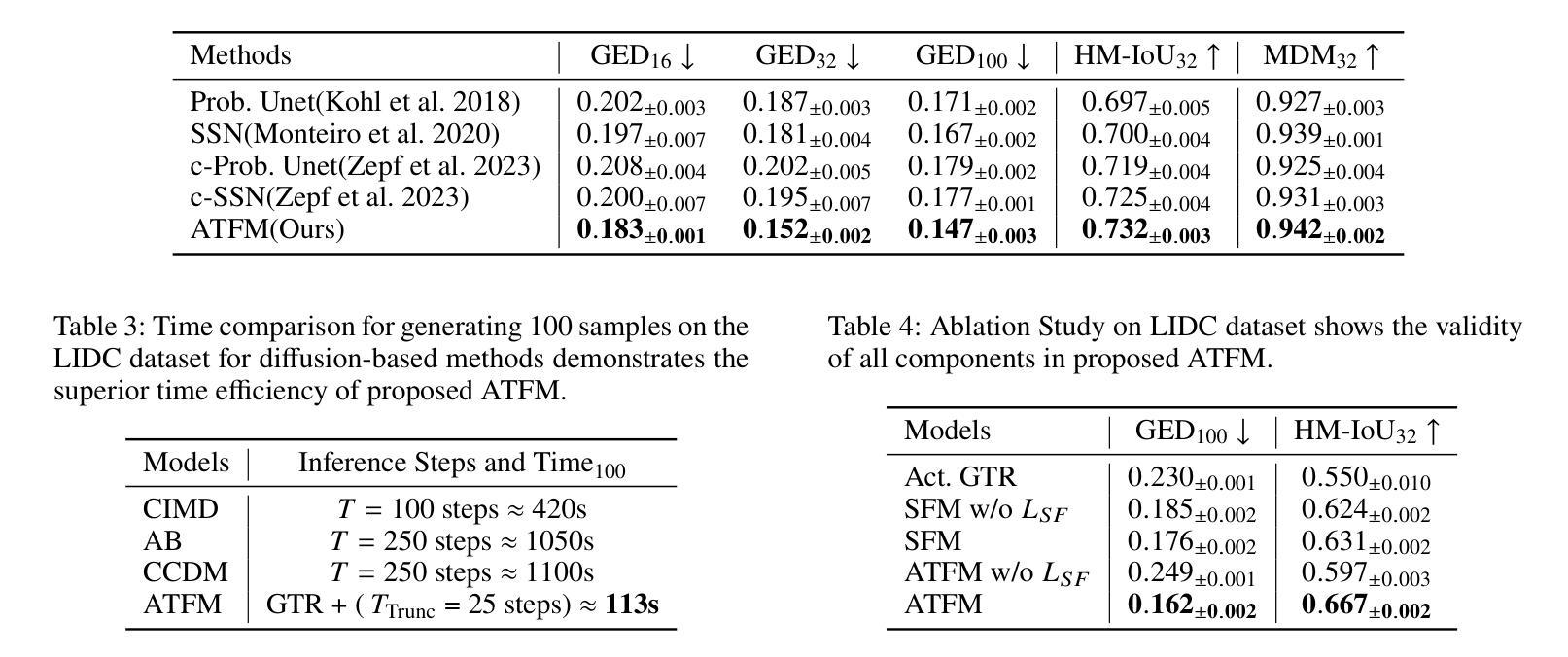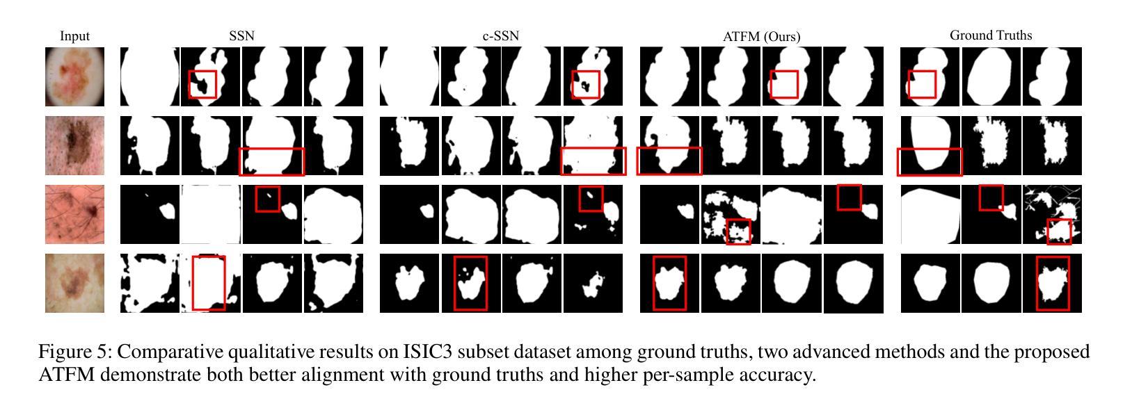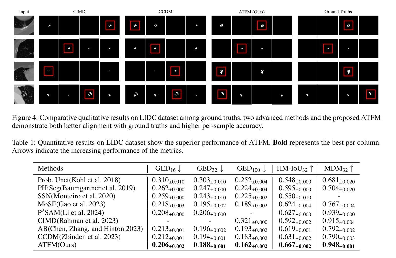 - 在LIDC和ISIC3数据集上的评估显示,ATFM在性能上优于现有方法,显著提高全局编辑距离和分层交并比指标。