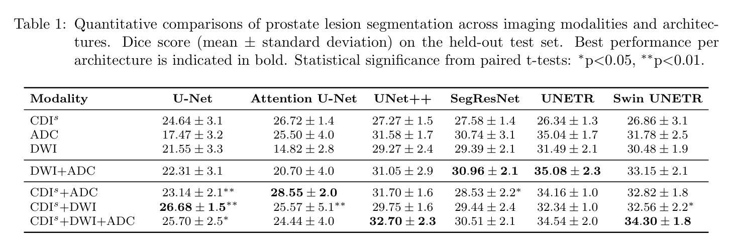 - 本研究评估了合成相关扩散成像(CDI^s)对前列腺癌病灶分割深度学习的性能影响。