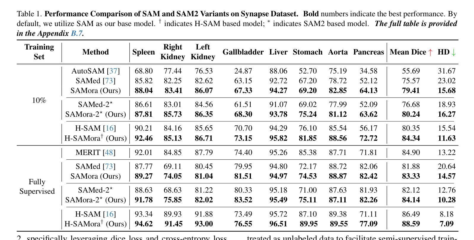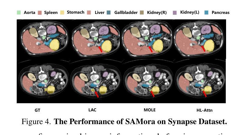 - 在Synapse、LA和PROMISE12数据集上,SAMora实现了最佳性能。