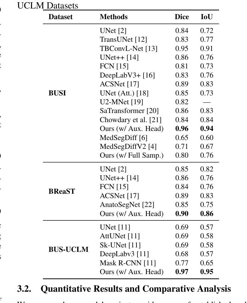 - 该模型在公共乳腺超声数据集上取得了最先进的成果,Dice得分领先。