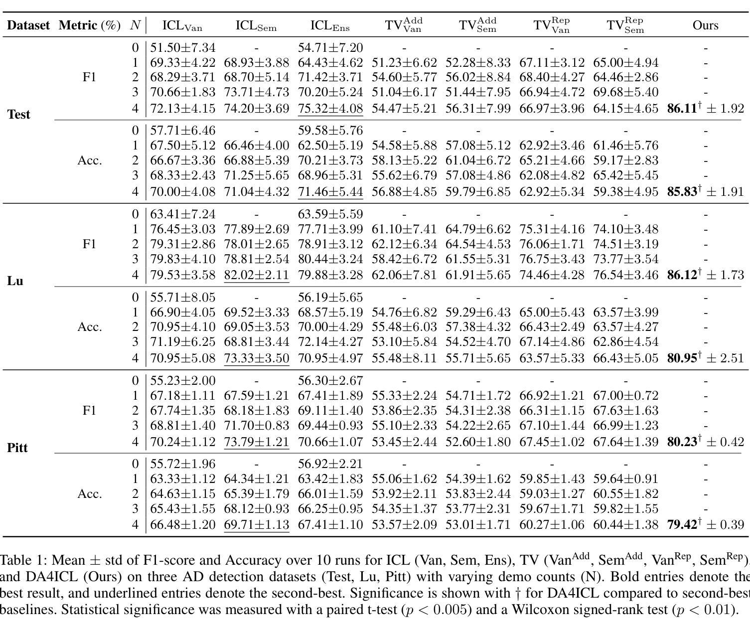 - DA4ICL在三个阿尔茨海默病基准测试中实现了相较于传统方法显著且稳定的提升。