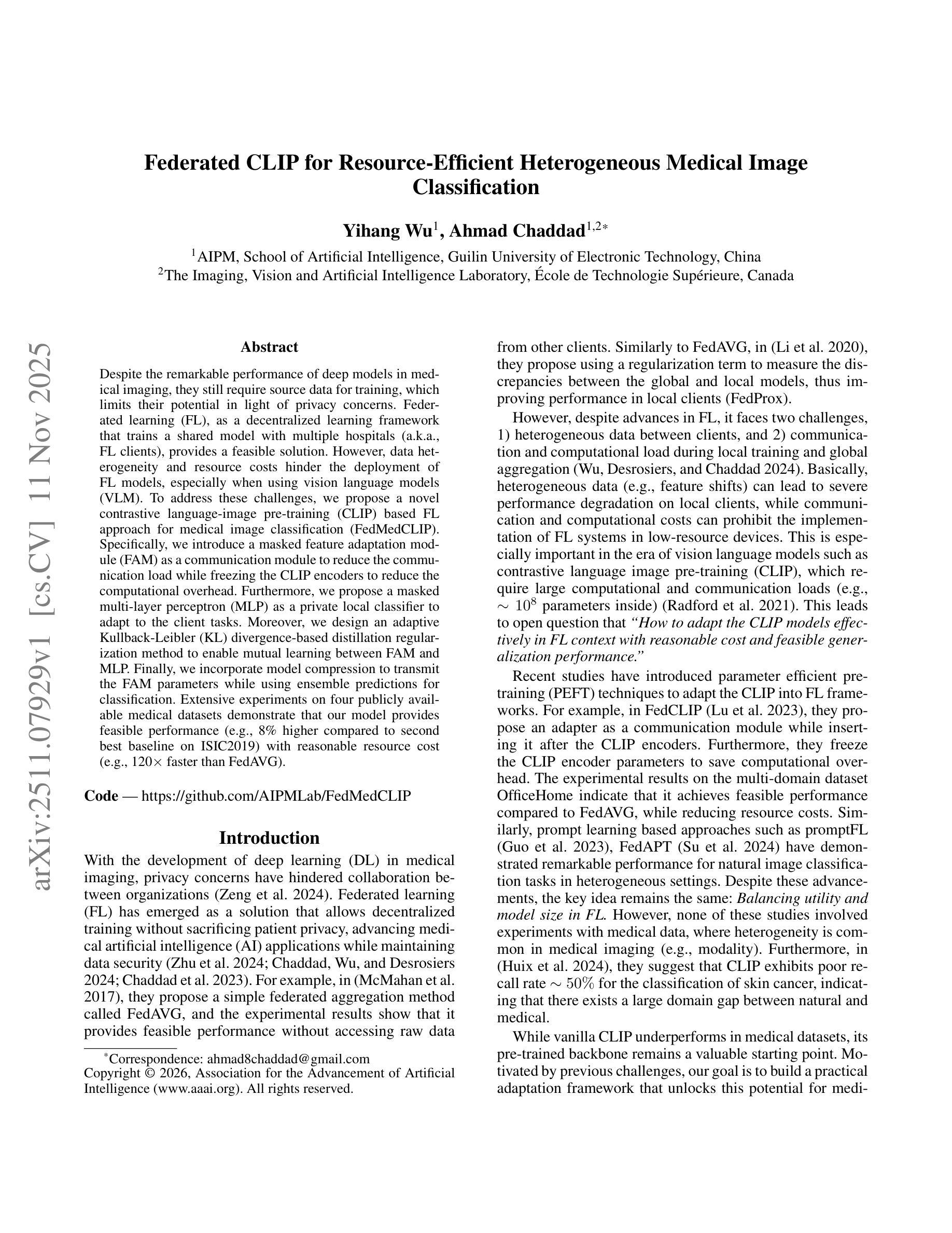 PDF Accepted in AAAI 2026 Main track. Code is available at https://github.com/AIPMLab/FedMedCLIP
