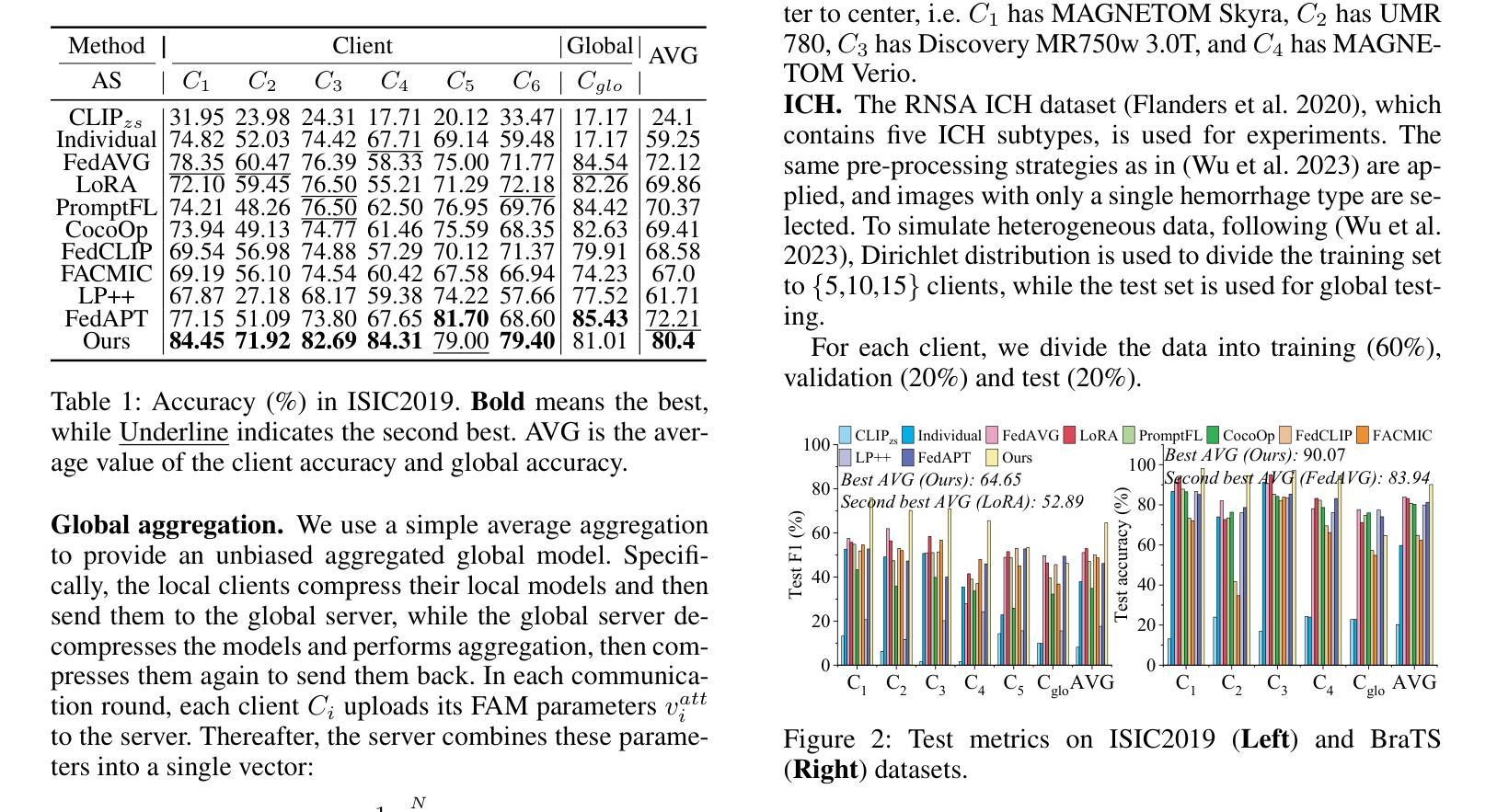 - 提出了基于对比语言图像预训练的联邦学习方案(FedMedCLIP)用于医学图像分类。