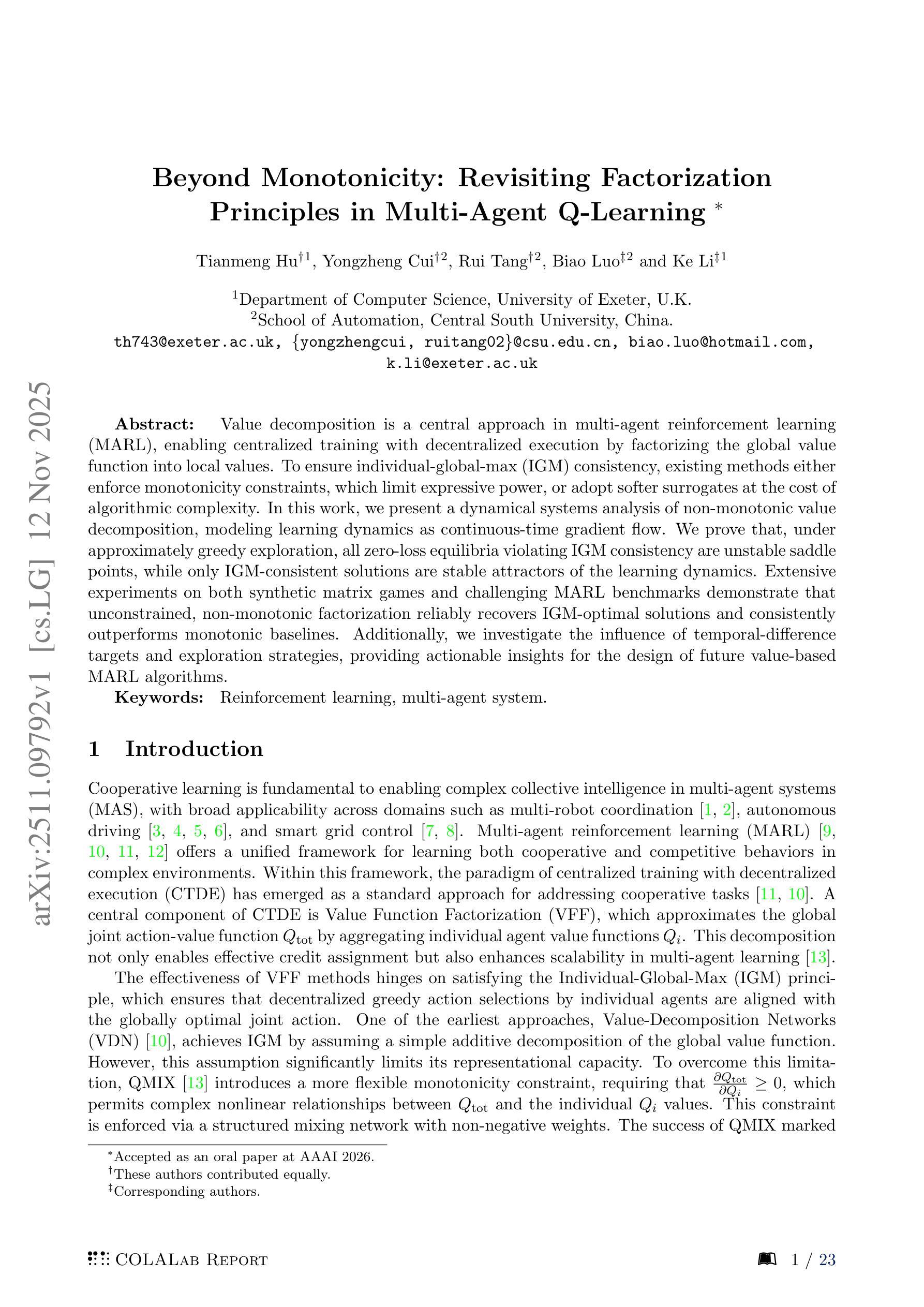 - 通过动态系统分析非单调价值分解,本研究将学习动态建模为连续时间梯度流。