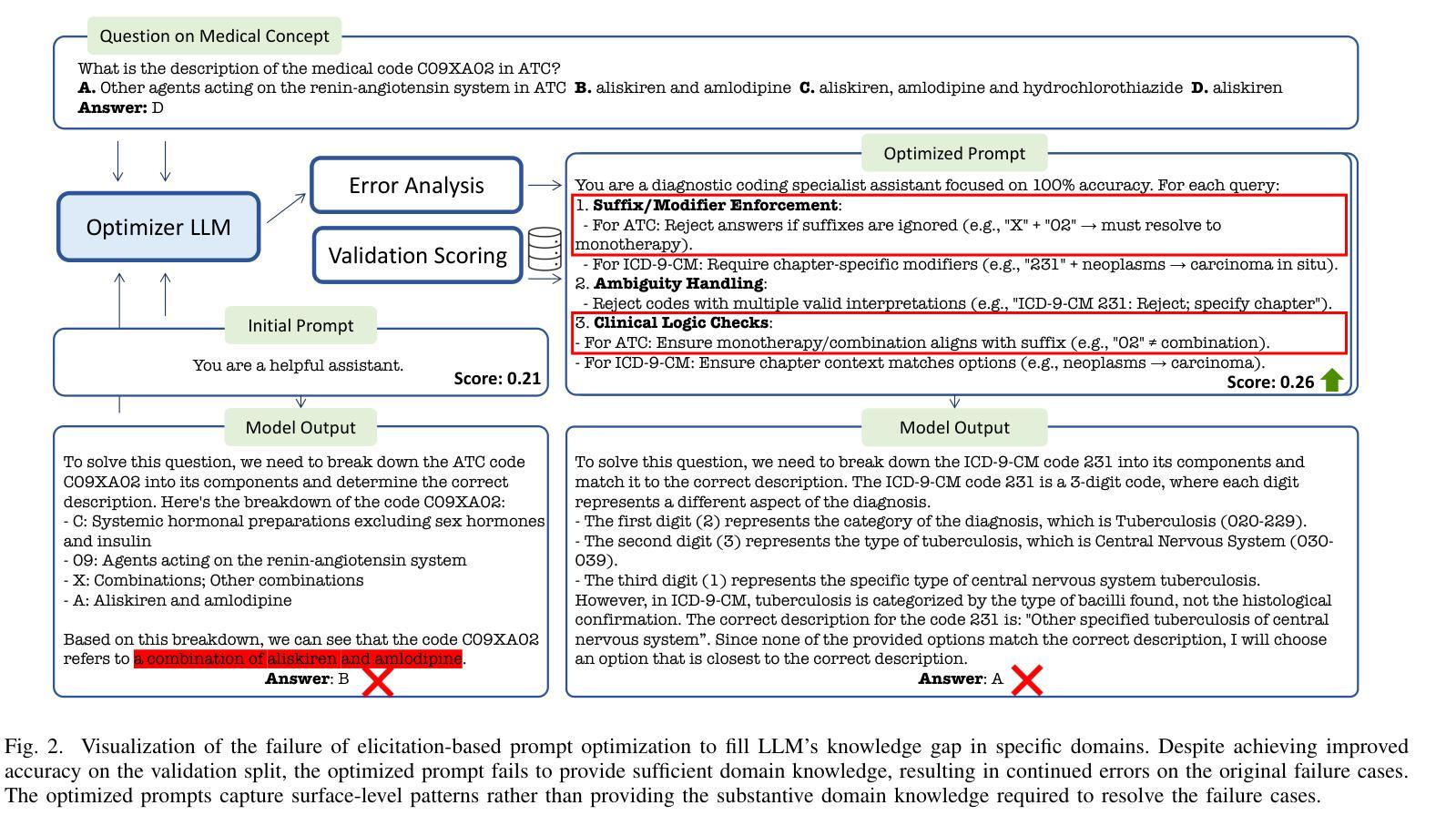 虽然提示优化已作为增强语言模型性能的关键技术出现,但现有方法主要集中在基于激发的策略上,寻找最优提示来激活模型的能力。这些方法在应对知识密集型任务时存在根本性局限,因为它们仅在固定的参数边界内操作,而不是提供特定领域所需的事实知识、术语精度和推理模式。为了解决这些局限,我们提出了基于知识提供的提示优化(KPPO)框架,将提示优化重新定义为系统知识集成,而非潜在激发。KPPO引入了三个关键创新点:1) 知识缺口填充机制,用于识别和目标化知识缺口;2) 批量候选评估方法,同时考虑性能提升和分布稳定性;3) 自适应知识修剪策略,平衡性能和令牌效率,减少最多达29%的令牌使用。在15个来自不同领域的知识密集型基准测试上的广泛评估表明,KPPO优于基于激发的方法,在最强基准测试上平均性能提高约6%,同时实现相当或更低的令牌消耗。代码地址:https://github.com/xyz9911/KPPO。