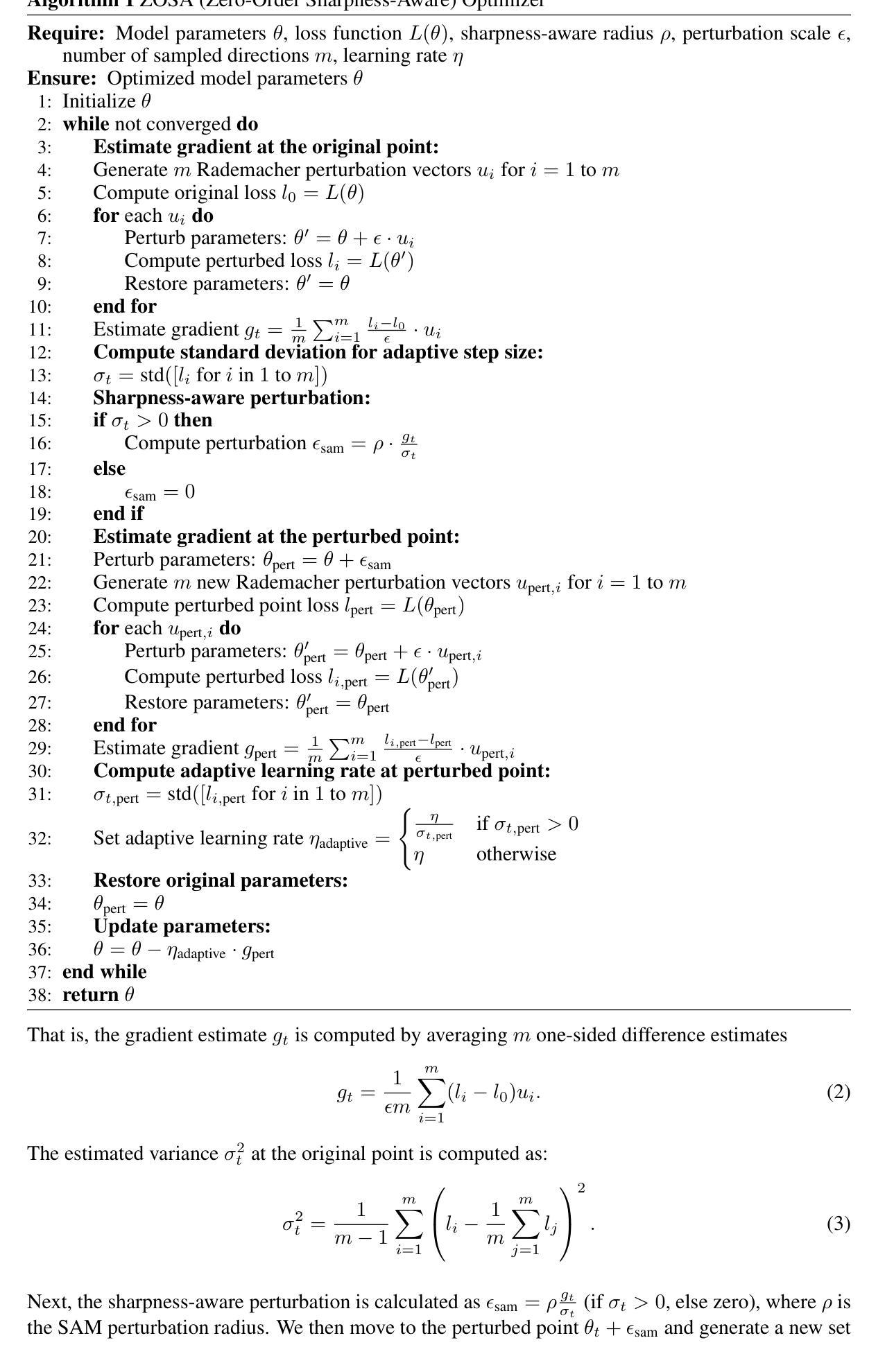- ZOSA采用Rademacher扰动向量估计梯度,无需反向传播。