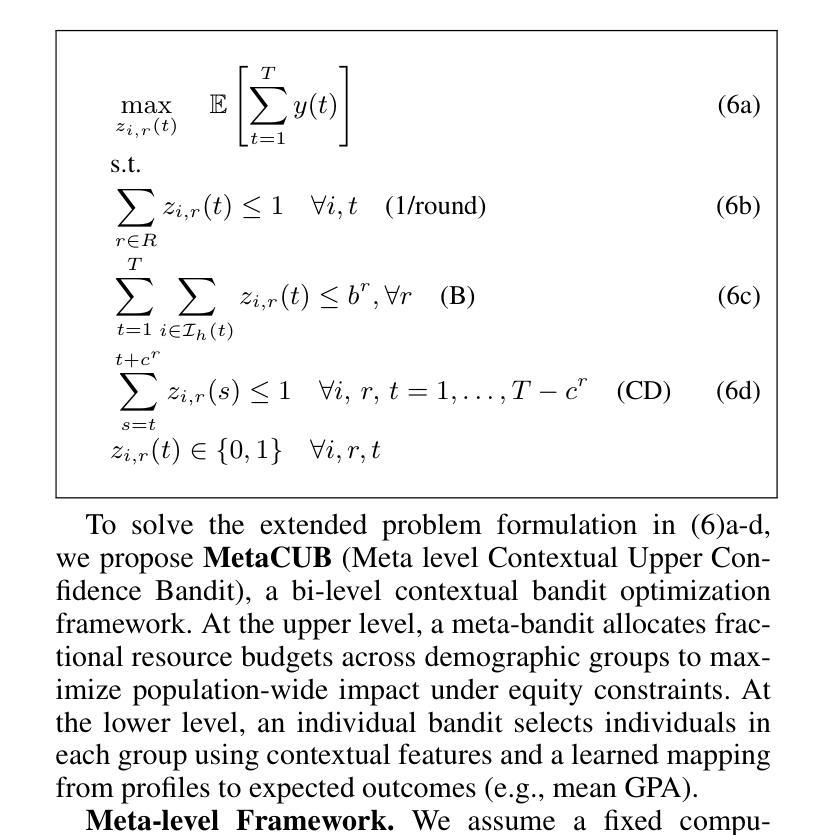 - 通过教育及劳动力发展领域的真实数据集验证,证明该框架在累积成果、延迟适应性及跨子群公平分配方面的优势。