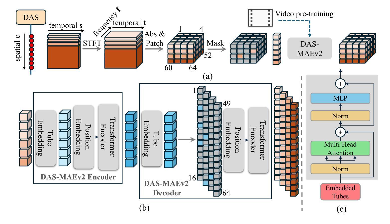光纤分布式声学传感(DAS)已经作为一种关键的物联网(IoT)传感技术崭露头角,在工业领域有着广泛的应用。然而,DAS信号的二维时空形态给分析带来了挑战,传统的方法证明效果并不理想,而深度学习的方法则更加适用。尽管我们之前的工作DAS掩码自编码器(DAS-MAE)在无标签情况下建立了最先进的性能和泛化能力,但在以时间为主的DAS数据的频率分析中并不令人满意。此外,有效训练数据的限制无法解决DAS-MAE中Transformer架构固有的大量数据要求。为了克服这些局限性,我们提出了一种增强框架,结合了短时傅里叶变换(STFT)进行明确的时空频率特征提取,以及开创性的视频到DAS跨模态预训练来缓解数据约束。这种方法通过无标签重建任务学习高级表示(例如,事件分类)。实验结果表明实现了突破性改进:在少镜头分类中的错误率为0.1%(相对于DAS-MAE有90.9%的相对改进),在外部损伤预防应用中的识别错误率为4.7%(相对于从头开始训练有75.4%的改进)。作为开创视频到DAS跨模态预训练的第一项工作,通过连接计算机视觉和分布式传感领域,扩大了可用的训练资源。增强性能和泛化能力有助于在多种工业场景中部署DAS,同时推动工业物联网感知的跨模态表示学习。