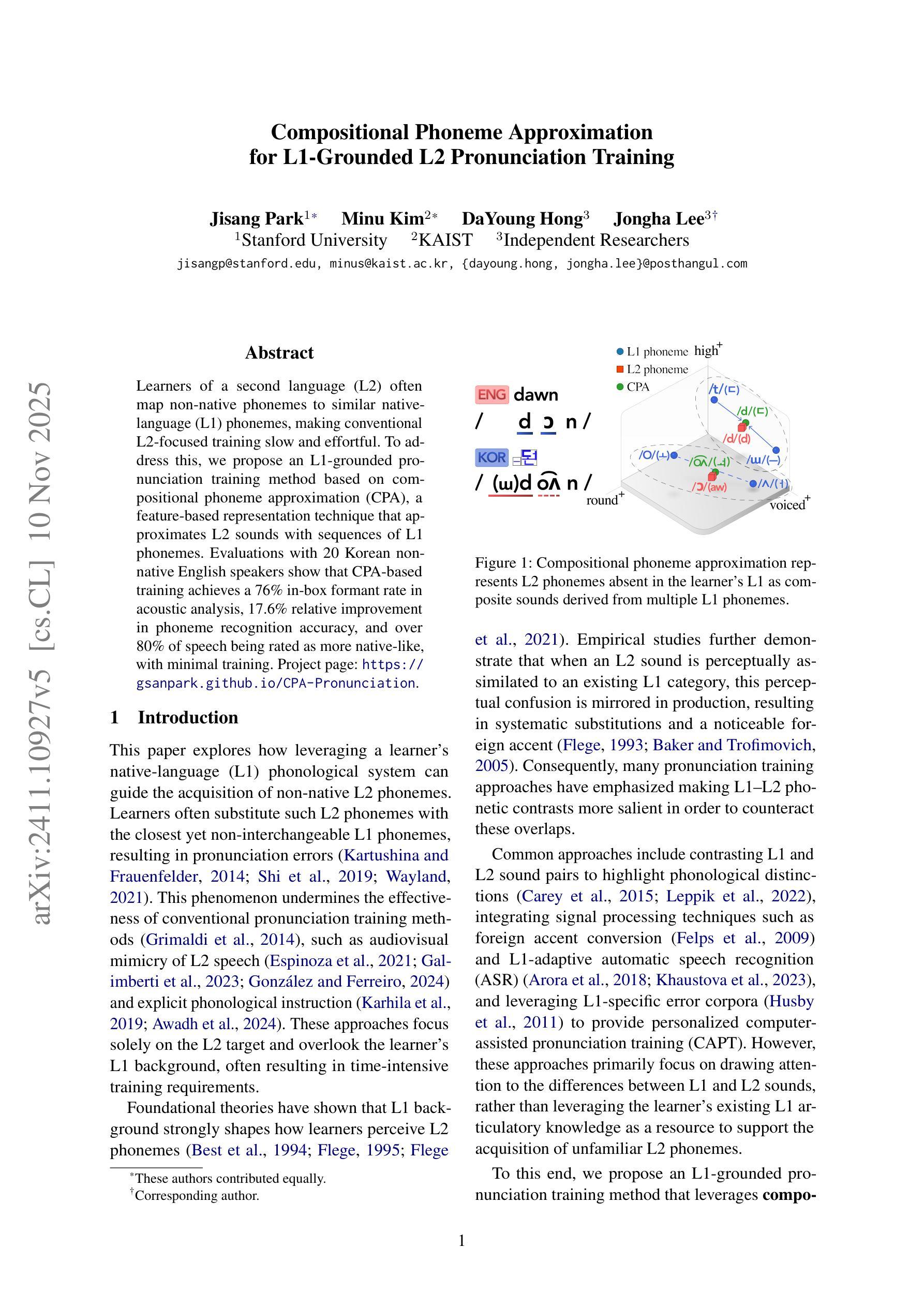 - 研究团队提出了一种新的L1-grounded发音训练方法,基于组合音素近似(CPA)技术。