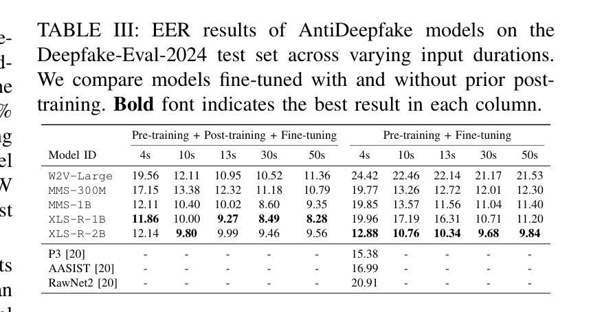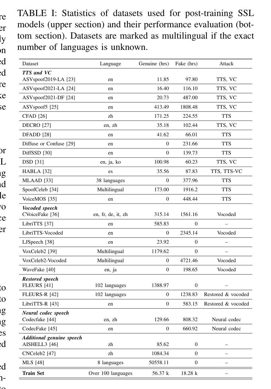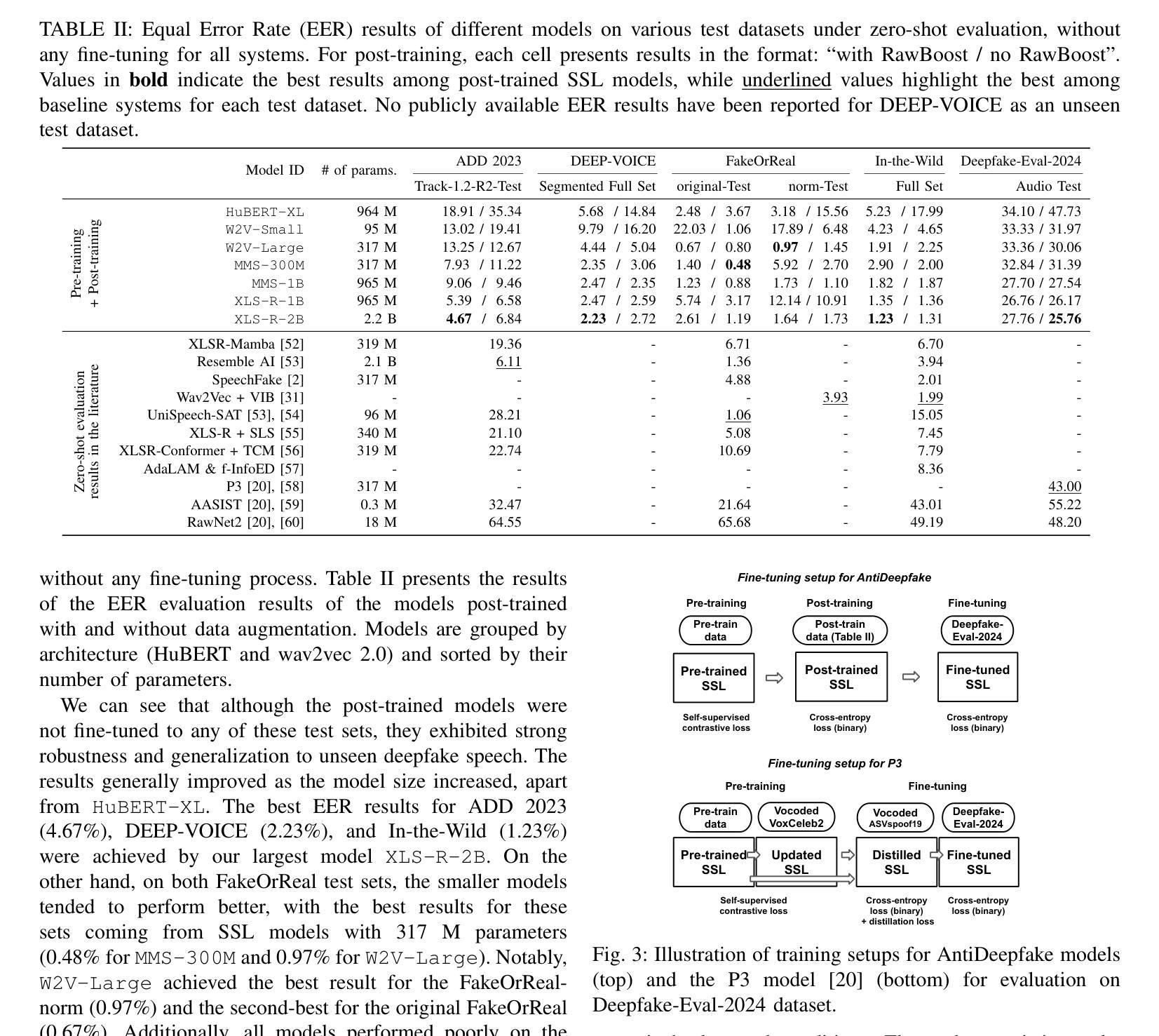 - 引入了一种基于自监督学习(SSL)模型的深度伪造语音检测的后训练技术。