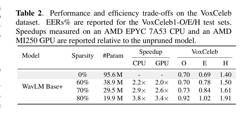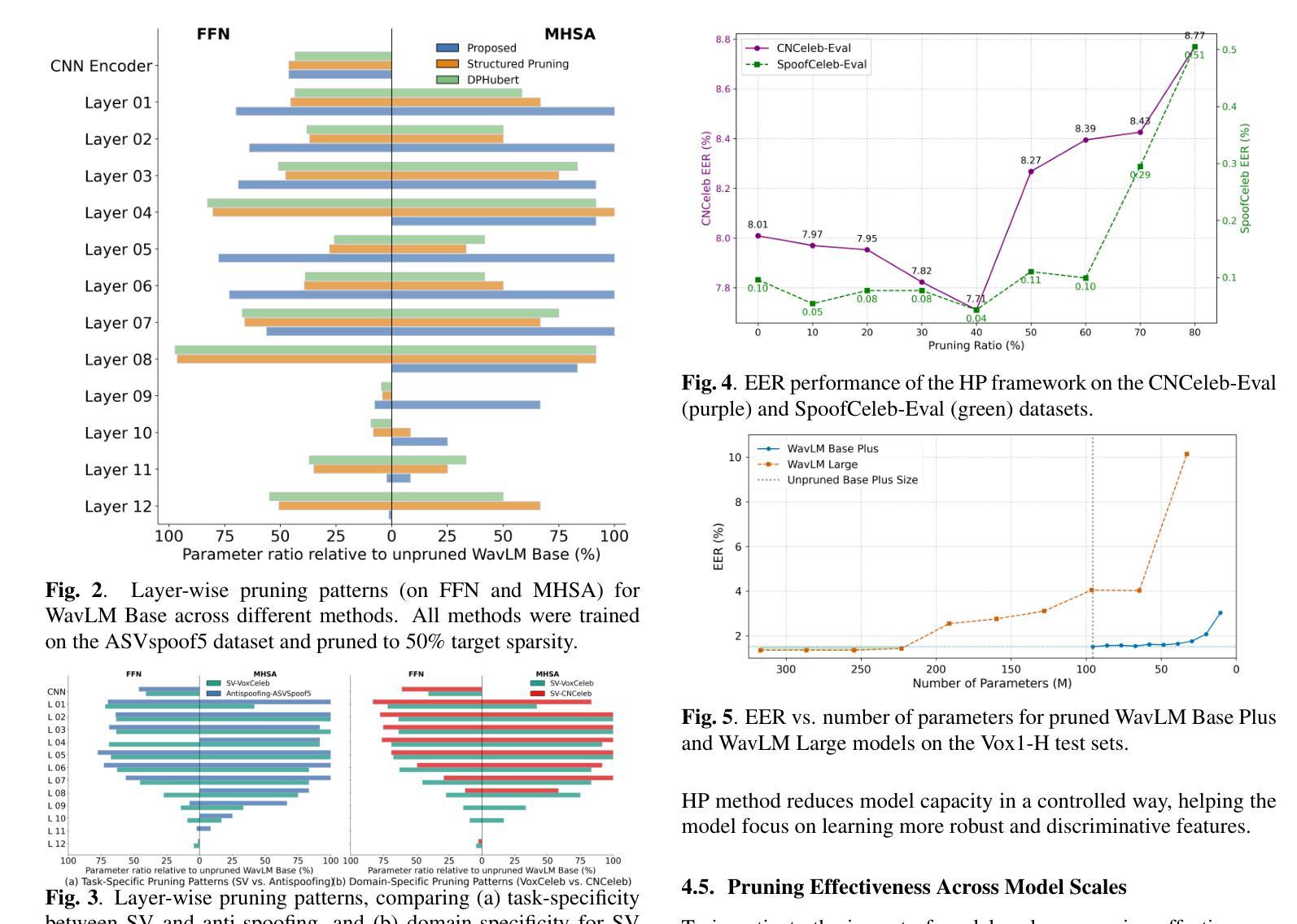 - 剪枝模型在语音处理任务中性能几乎没有降低。
