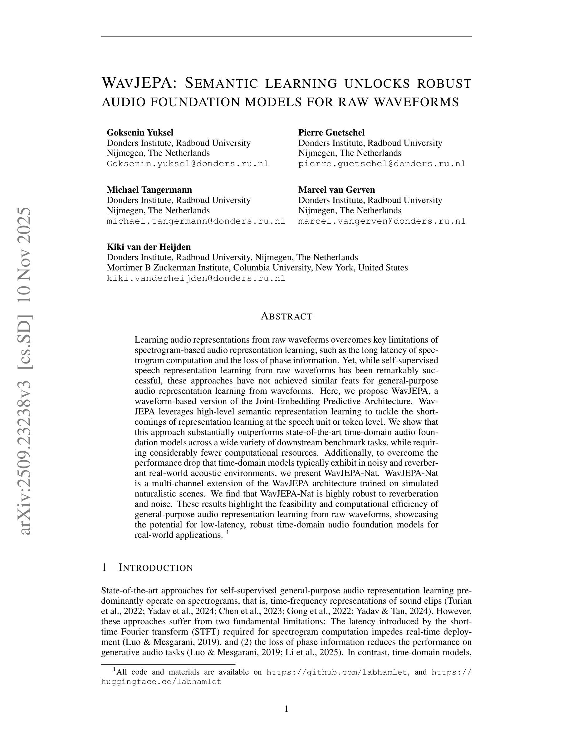 - WavJEPA-Nat是WavJEPA的多通道扩展,对混响和噪声具有高度的鲁棒性。
