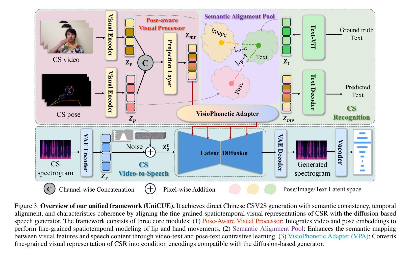 - UniCUE集成了细粒度的CS视觉语义提示,通过姿势感知的视觉处理器、精确的语义映射池以及VisioPhonetic适配器完成任务。
