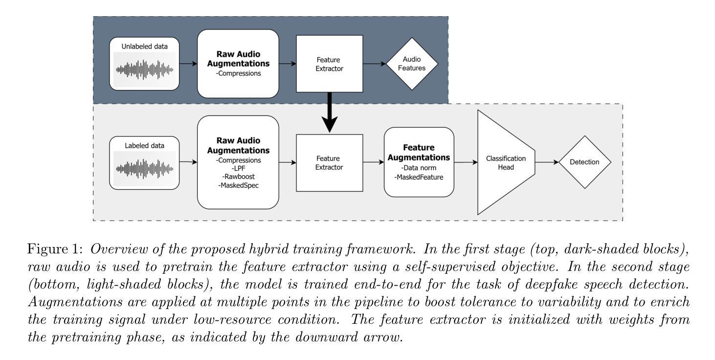 - 提出的混合训练框架旨在通过新型数据增强策略提升假音频检测性能。