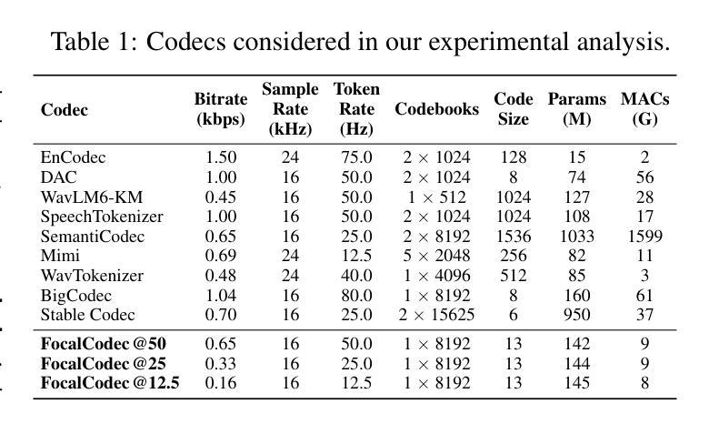 - FocalCodec能有效保留语音的语义和声音信息,适合用于生成建模。