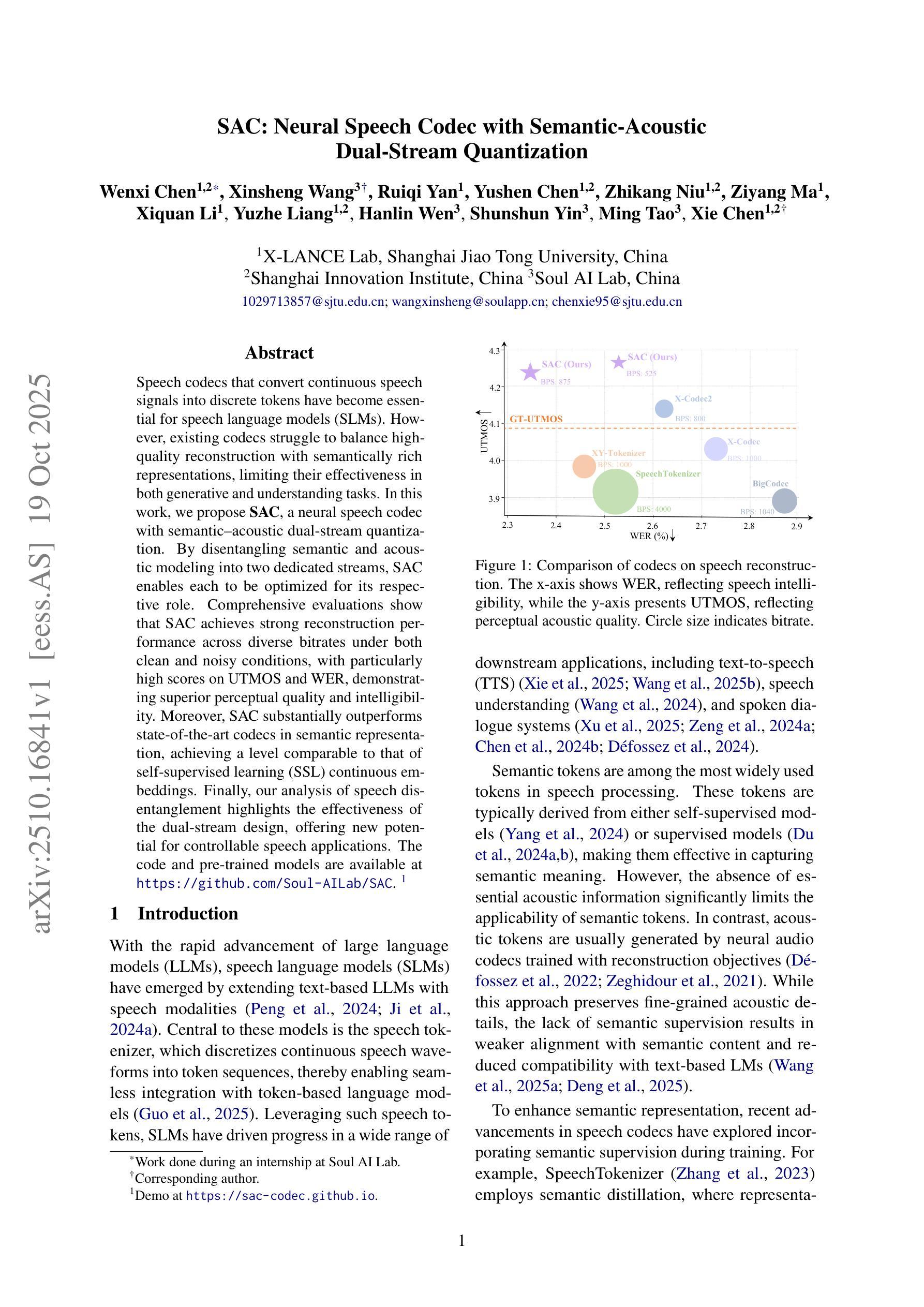 - 神经网络语音编解码器SAC解决了现有编解码器在重建质量和语义表示方面的难题。