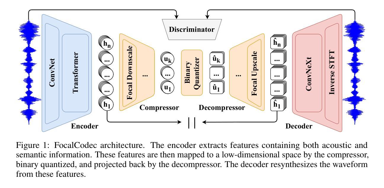 - FocalCodec能在较低比特率下工作,同时处理多语种和嘈杂环境下的语音。