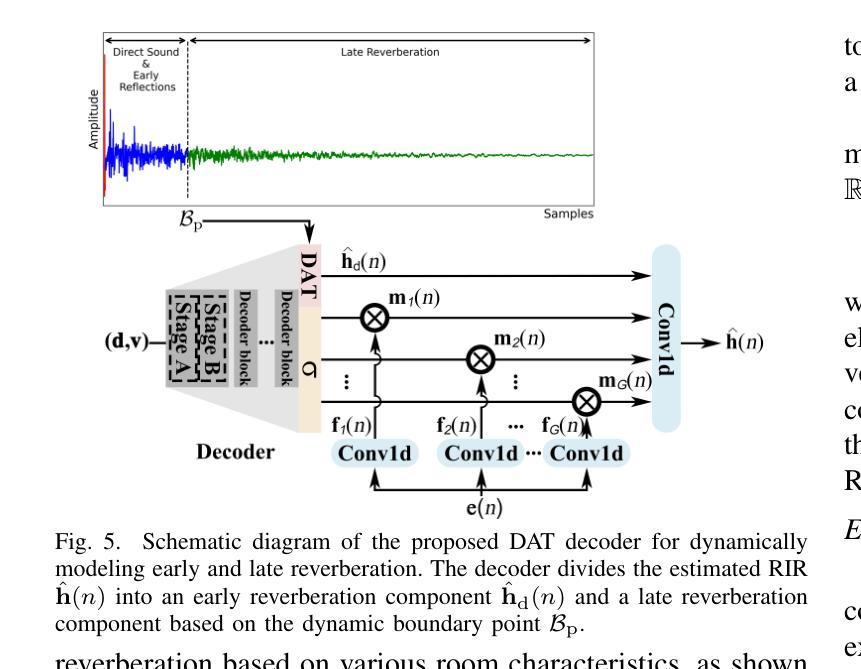 - 动态声学调音(DAT)解码器自适应分割早期反射和后期混响,提高了合成RIR的真实感。