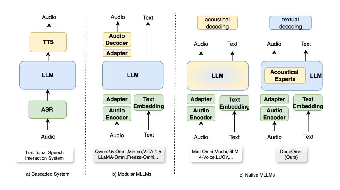 - 原生MLLMs能够结合语音和文本生成,保留丰富的副语言特征。