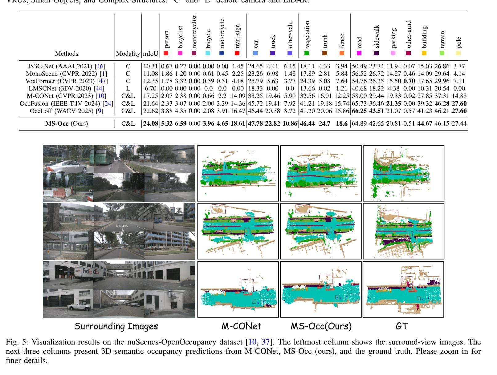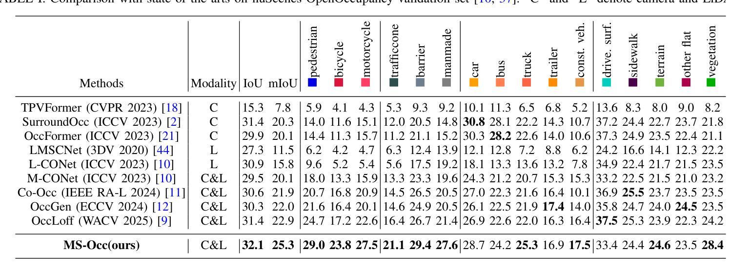 - MS-Occ结合了激光雷达的几何精度和相机的语义丰富性。