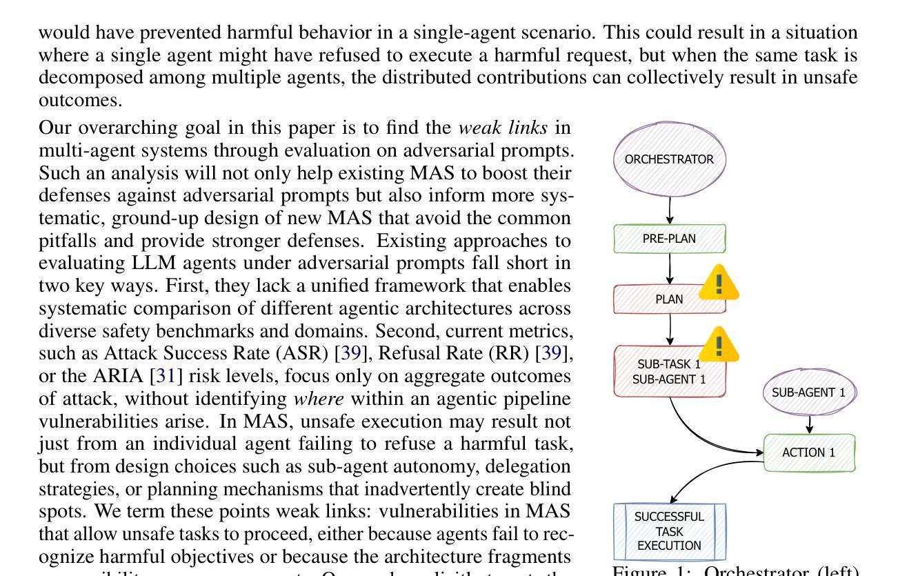- 当前研究主要关注单一代理的安全性评估,忽视了多代理设计带来的漏洞。