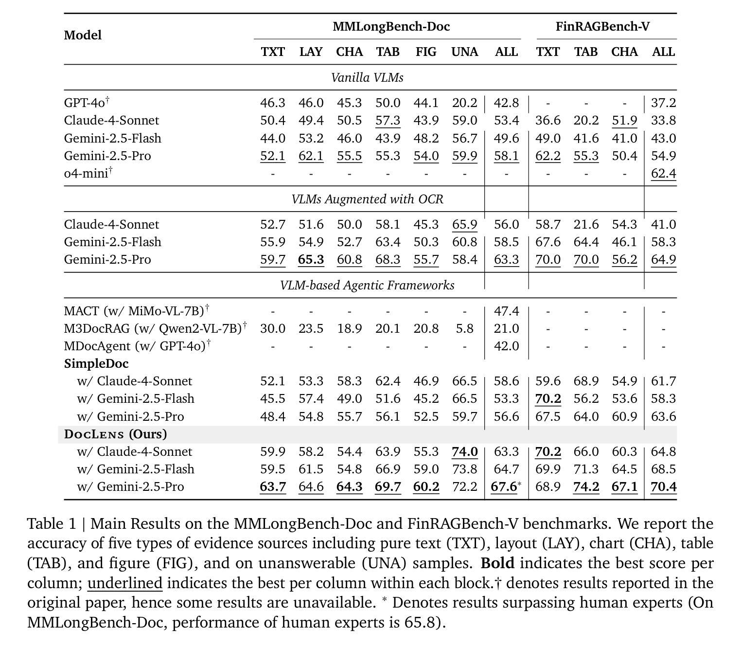 - 结合Gemini-2.5-Pro,DocLens在MMLongBench-Doc和FinRAGBench-V上实现了最先进的性能。