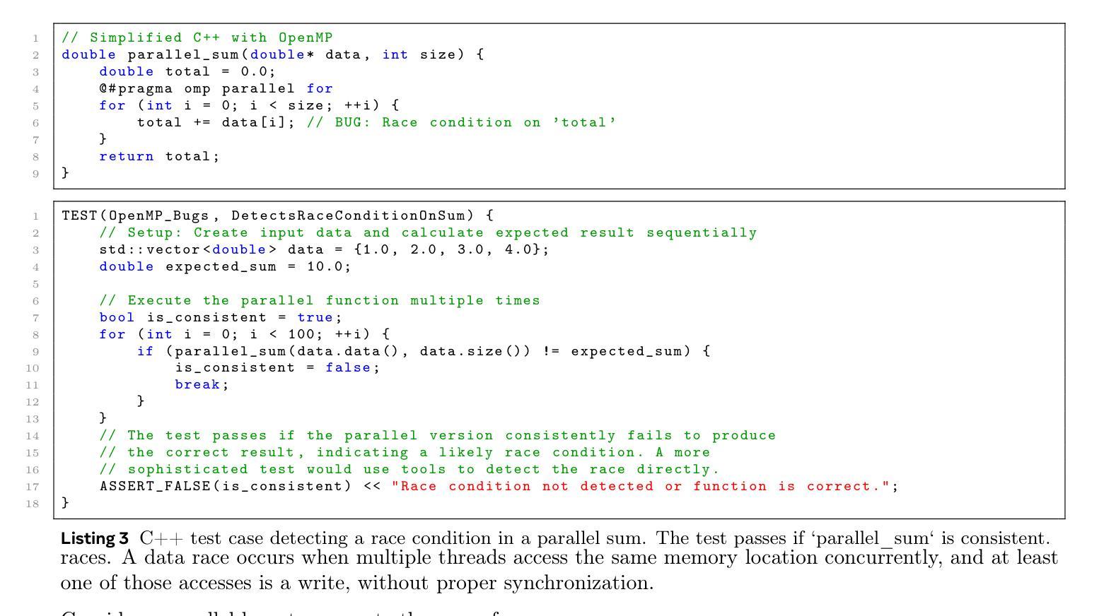 - 该框架能够针对并行执行结构、复杂通信模式和层次并行生成上下文感知单元测试。