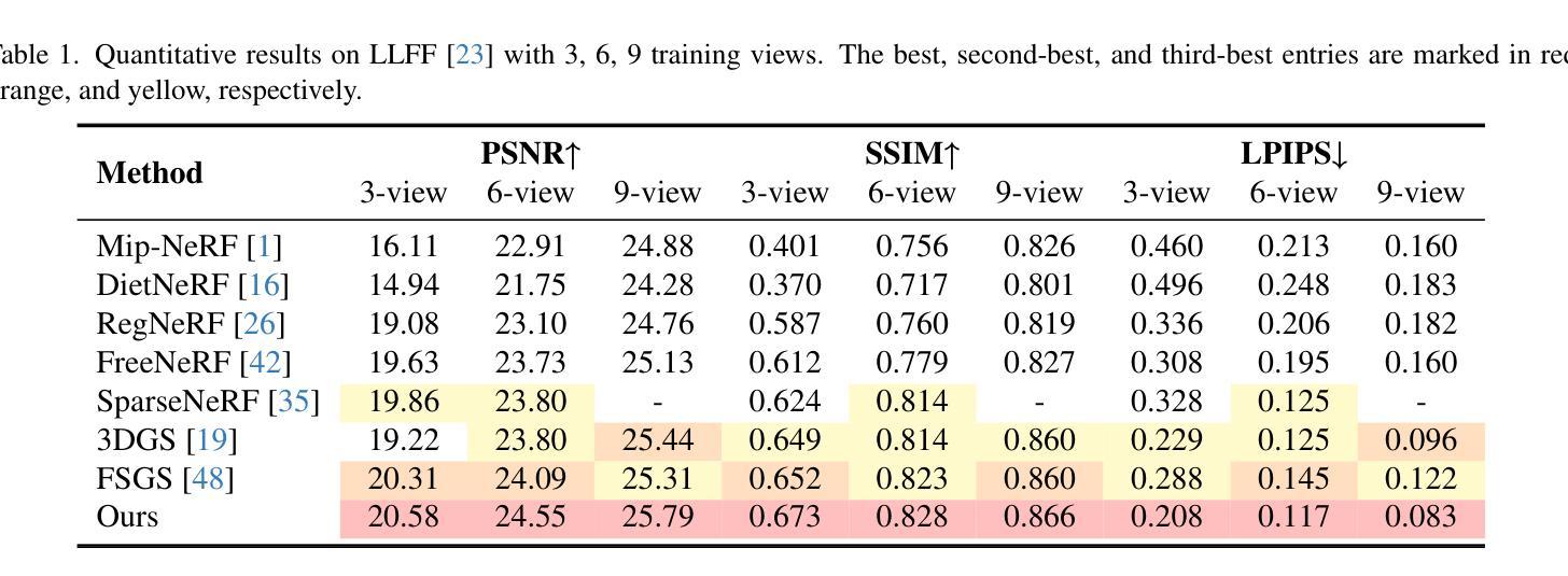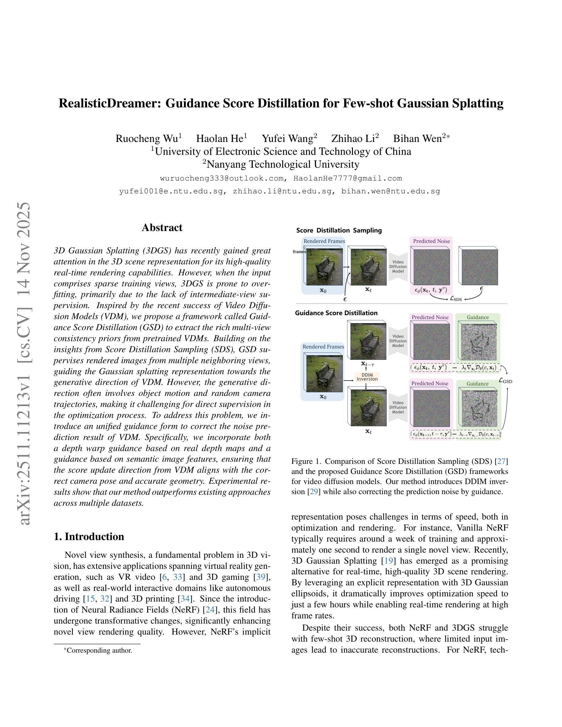 - 引入指导评分蒸馏(GSD)框架,用于解决三维高斯喷溅(3DGS)在稀疏训练视图下的过拟合问题。