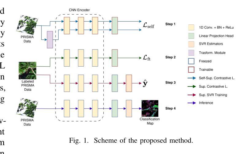 - 通过对比学习框架训练一维CNN编码器,以提取高光谱数据的稳健特征。