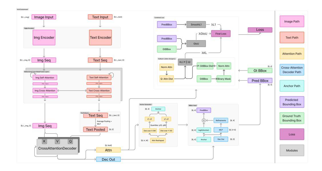 - 提出了一种基于注意力的神经网络架构,用于处理多语言REC任务。该架构利用多语言SigLIP2编码器,并通过注意力分布生成粗略的空间锚点进行定位。