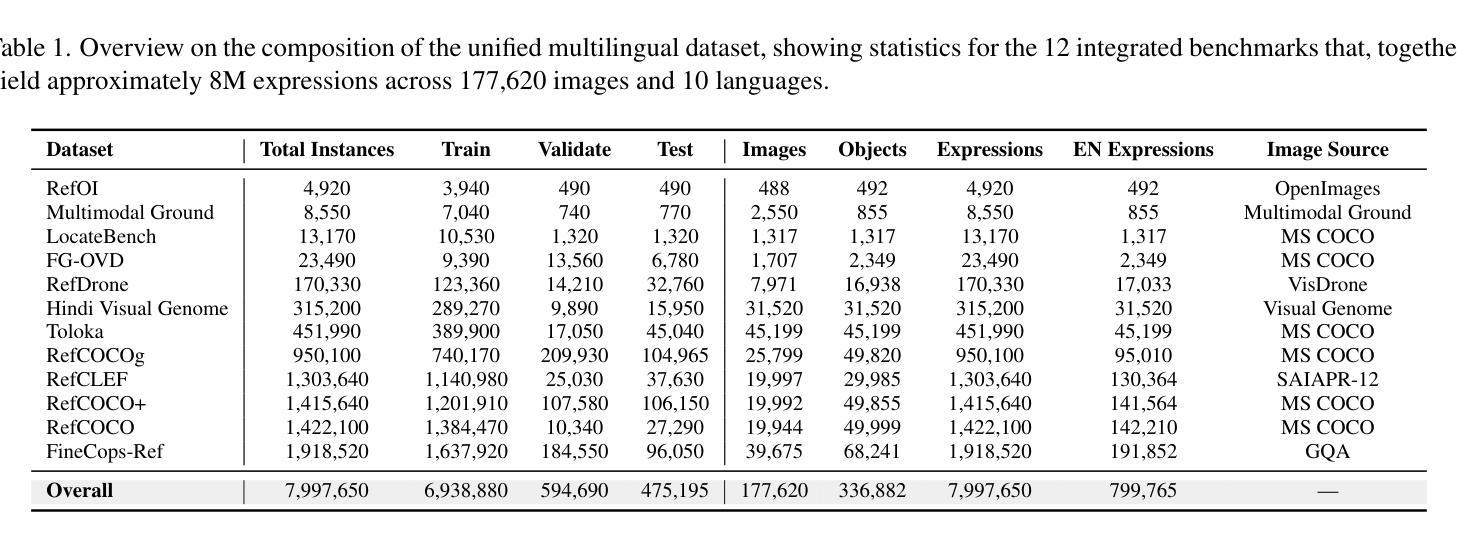 - 研究介绍了一种多语言指代表达式理解(REC)的任务,并强调了全球部署需求下的重要性。