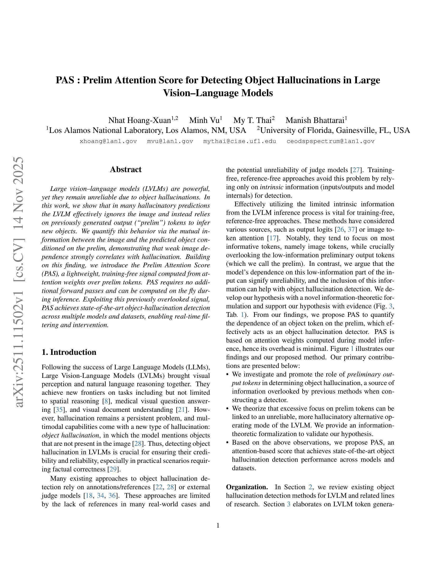 - 引入了一种新的信号——初步注意力得分(PAS),用于检测物体幻觉。
