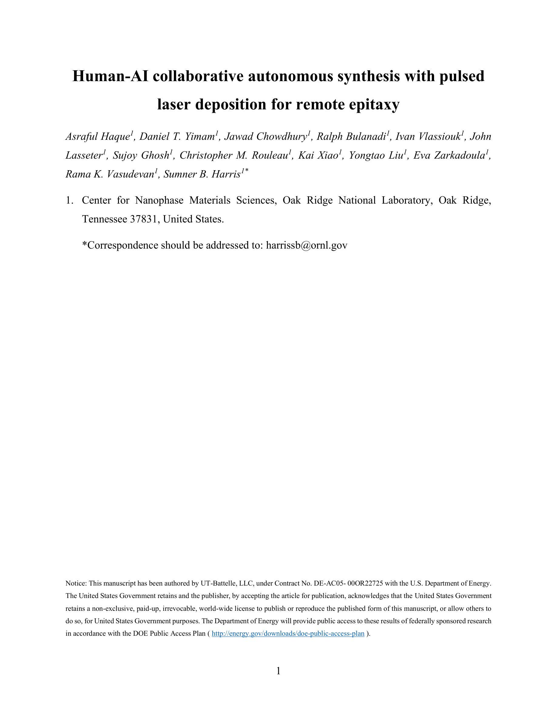 Authors:Asraful Haque, Daniel T. Yimam, Jawad Chowdhury, Ralph Bulanadi, Ivan Vlassiouk, John Lasseter, Sujoy Ghosh, Christopher M. Rouleau, Kai Xiao, Yongtao Liu, Eva Zarkadoula, Rama K. Vasudevan, Sumner B. Harris