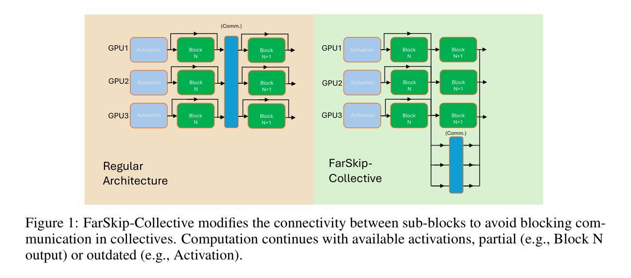 - 通过修改现代模型的架构,FarSkip-Collective实现了计算与通信的重叠。