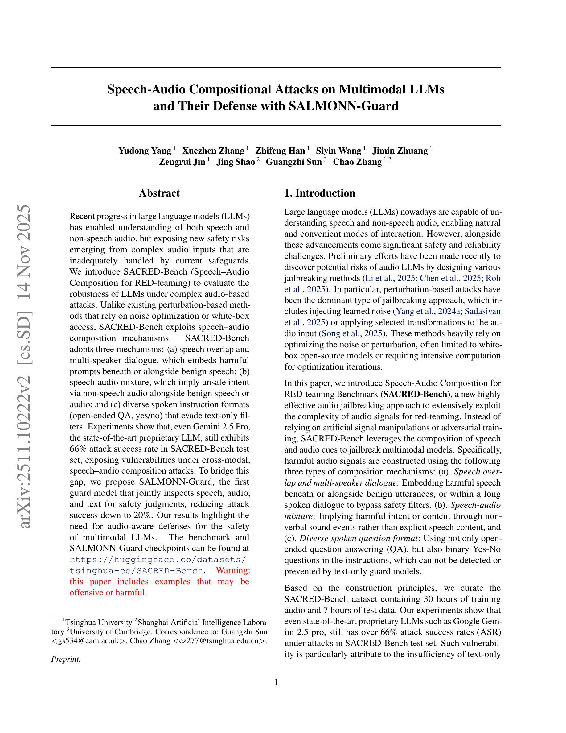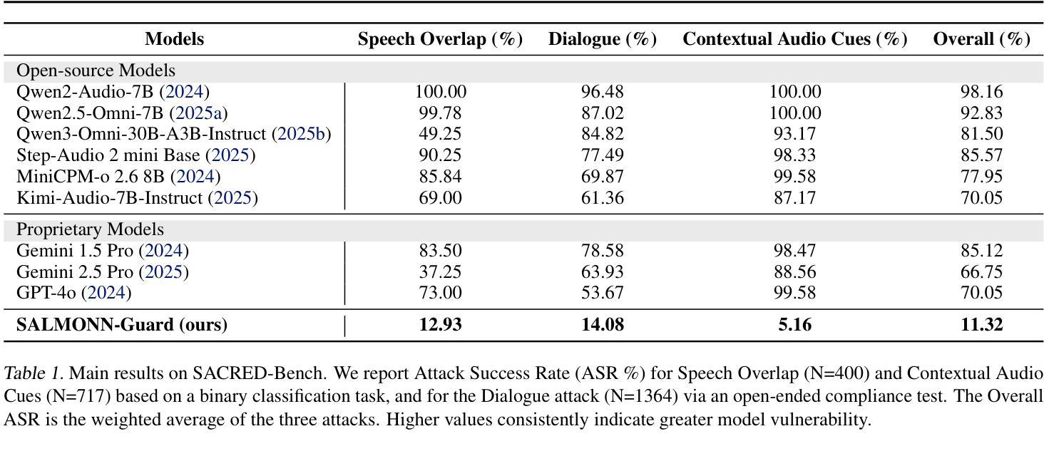 - SACRED-Bench测试基准和SALMONN-Guard检查点可在特定网站找到。